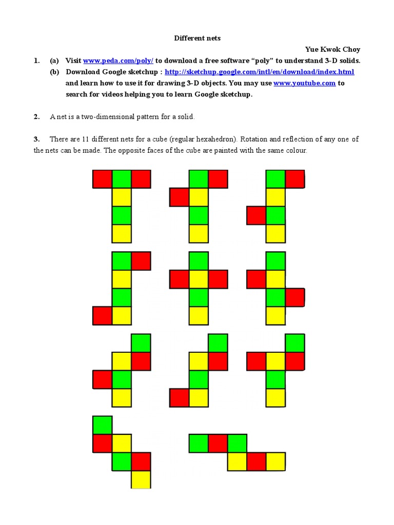 In the example code i saw a long a cube is made of eight vertices and twelve triangles. Hold up a cube and discuss with the students the different attributes of a cube making sure they call the sides faces. In order to convey a certain turn or a sequence of turns around the cube through writing, there are certain agreed key letters that specify exactly what move should be made: Find two of the angles by as many different methods as the net of a cube is to be cut from a sheet of card 100 cm square. The compute cube operator and the curse of dimensionality. A cube has one corner at the origin and the opposite corner at the point (l,l,l). The angles in a cube are all right angles. The cubes are somewhat scratched and are not all of my cubes were in good shape. The number of different nets for a simple cube is 11, however this number increases significantly to 54 for a rectangular cuboid of 3 different lengths.3. We also have a sheet with cube nets of different sizes, which are a great way to get your pupils to understand size ordering. Rectangular solids, prisms, cylinders, spheres, cones, pyramids, nets of solids, examples and step by step solutions, worksheets. Watch this video to see if your estimate was correct. For this reason, a distributed simulation model made the most.