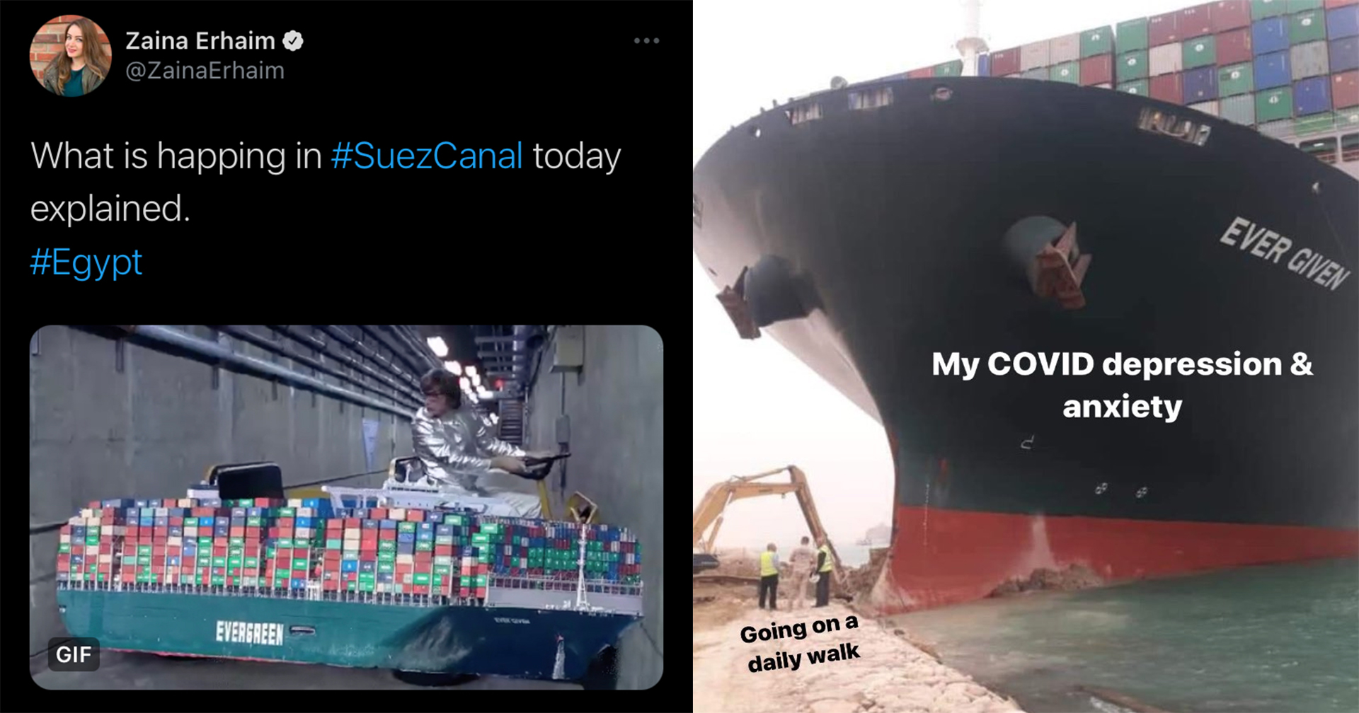 A viral meme wouldn't be complete without some pop culture references, including the iconic only time will tell when the ever given will finally be freed from the suez canal, but for the sake of global.